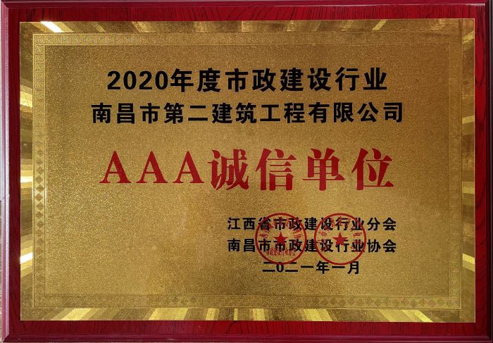 日前,江西省市政建設(shè)行業(yè)協(xié)會和南昌市市政行業(yè)協(xié)會召開兩年一次的先進表彰大會,我公司優(yōu)異成績連獲2020年度省、市市政建設(shè)行業(yè)“先進單位”和“AAA誠信單位”稱號。