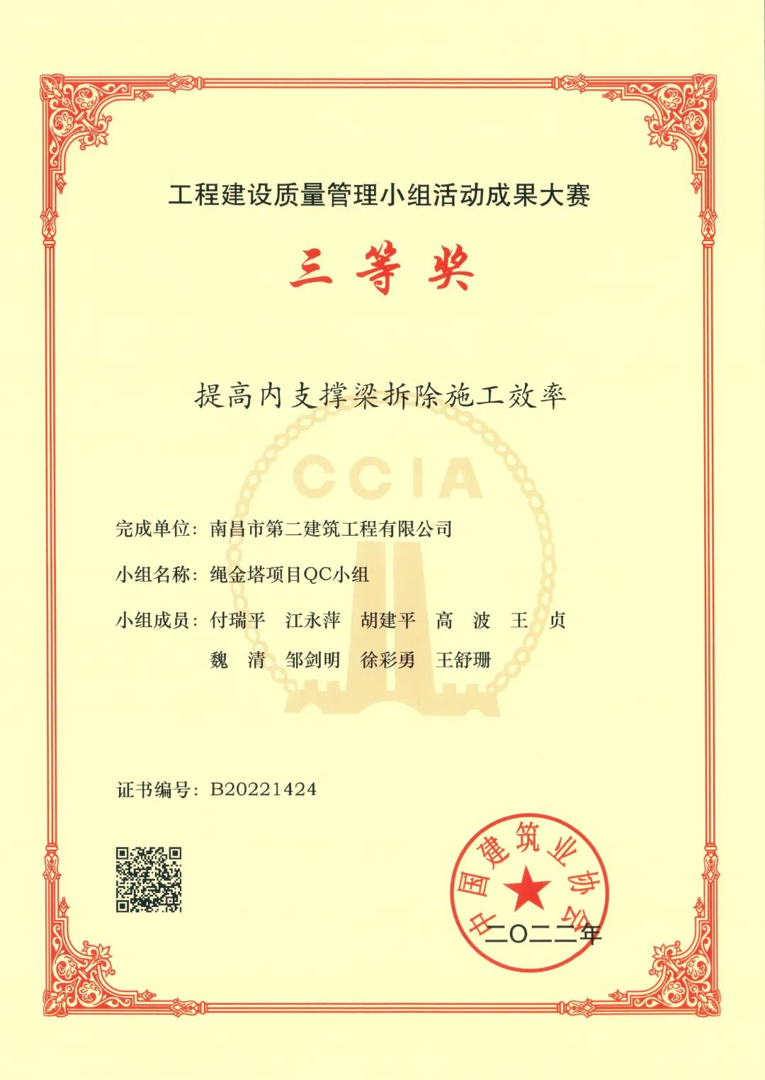 【概要描述】 近日,公司繩金塔項目QC小組在2022年全國工程建設質量管理小組活動成果大賽評選中榮獲三等獎。