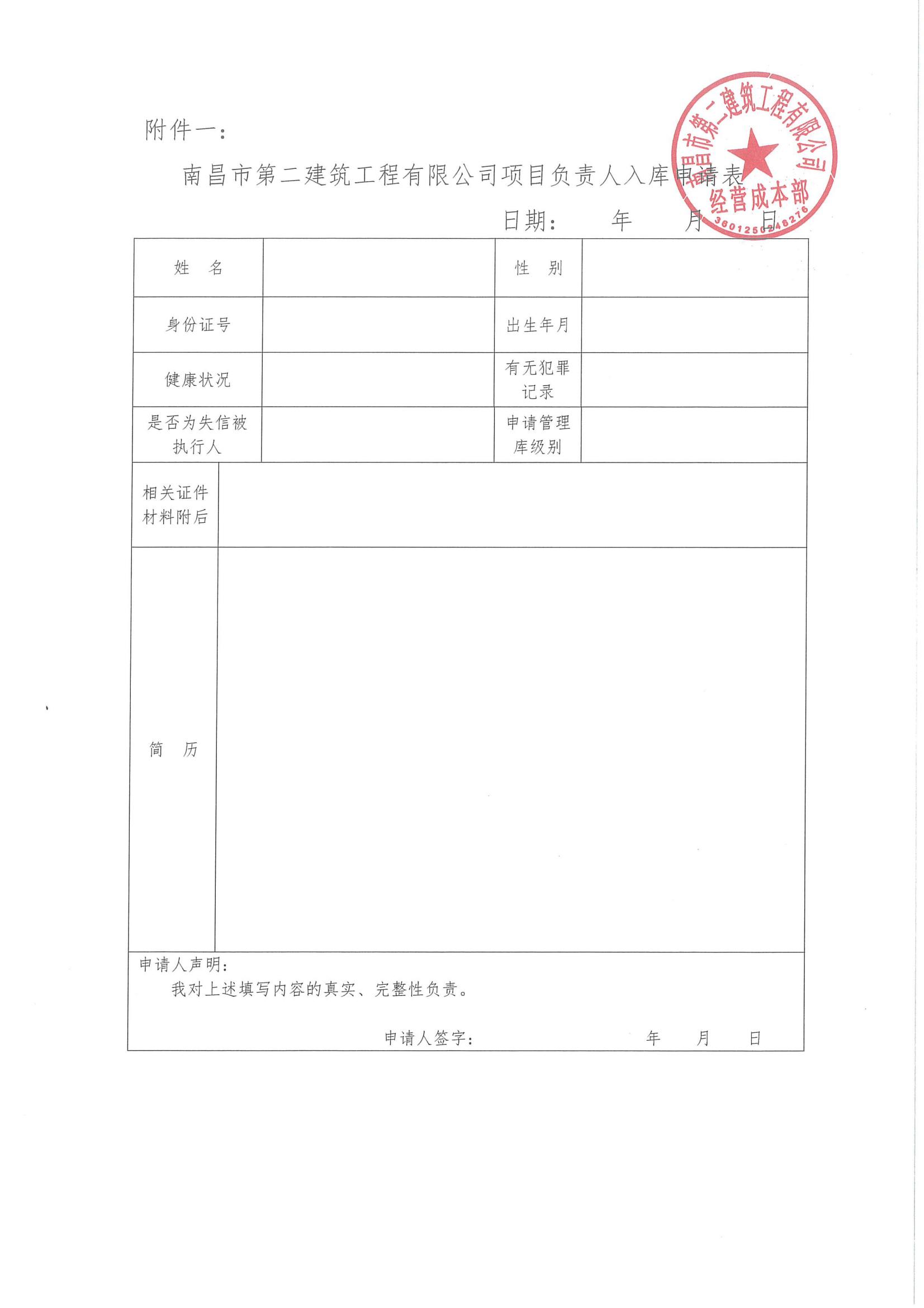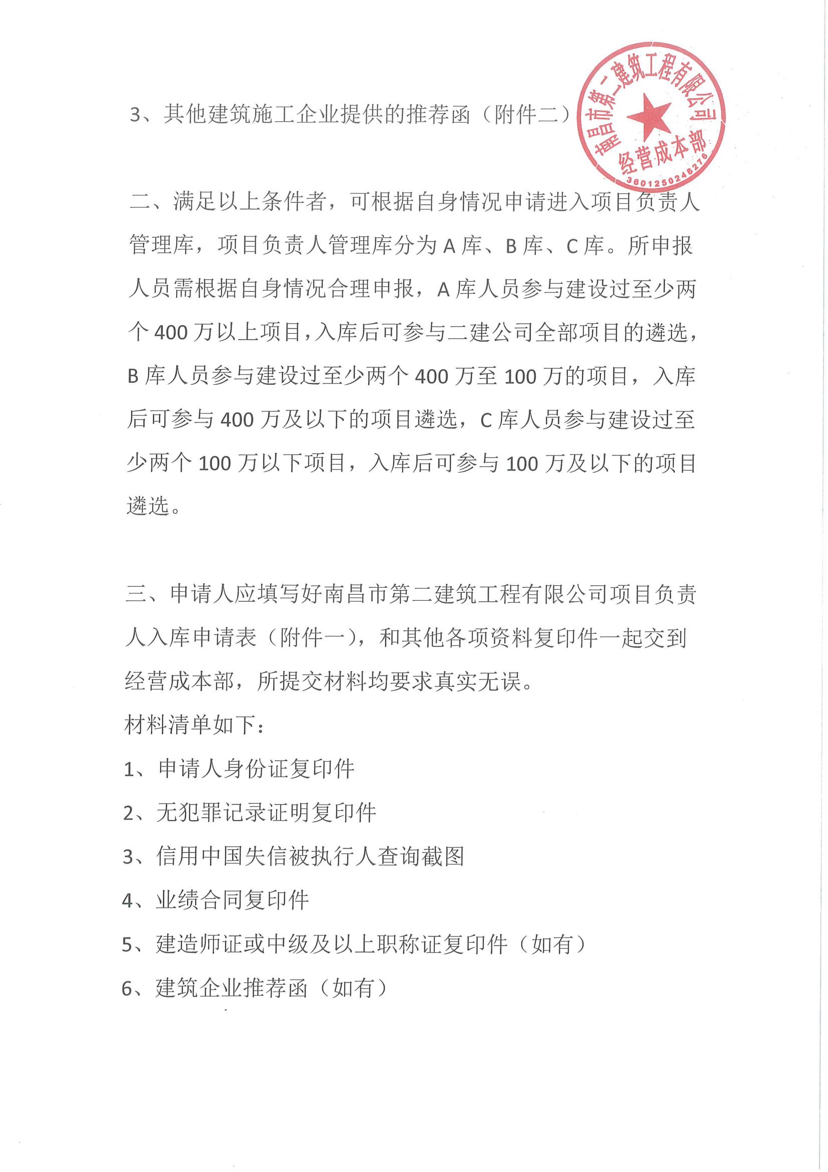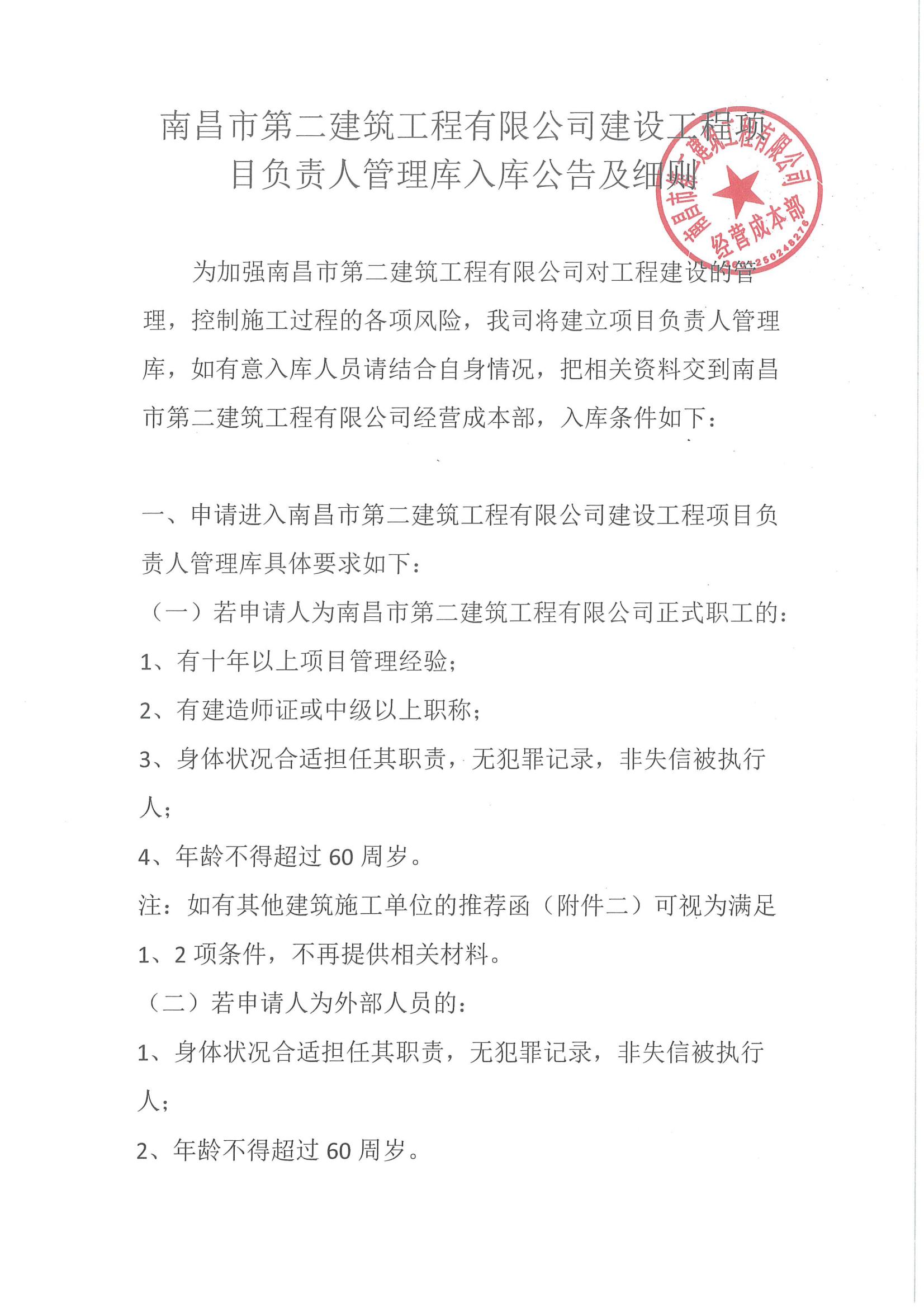 南昌市第二建筑工程有限公司建設(shè)工程項(xiàng)目負(fù)責(zé)人管理庫入庫公告及細(xì)則