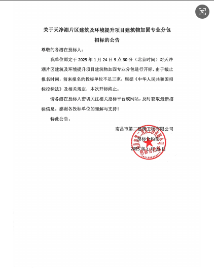 關(guān)于天凈湖片區(qū)建筑及環(huán)境提升項目建筑物加固專業(yè)分包招標(biāo)的公告